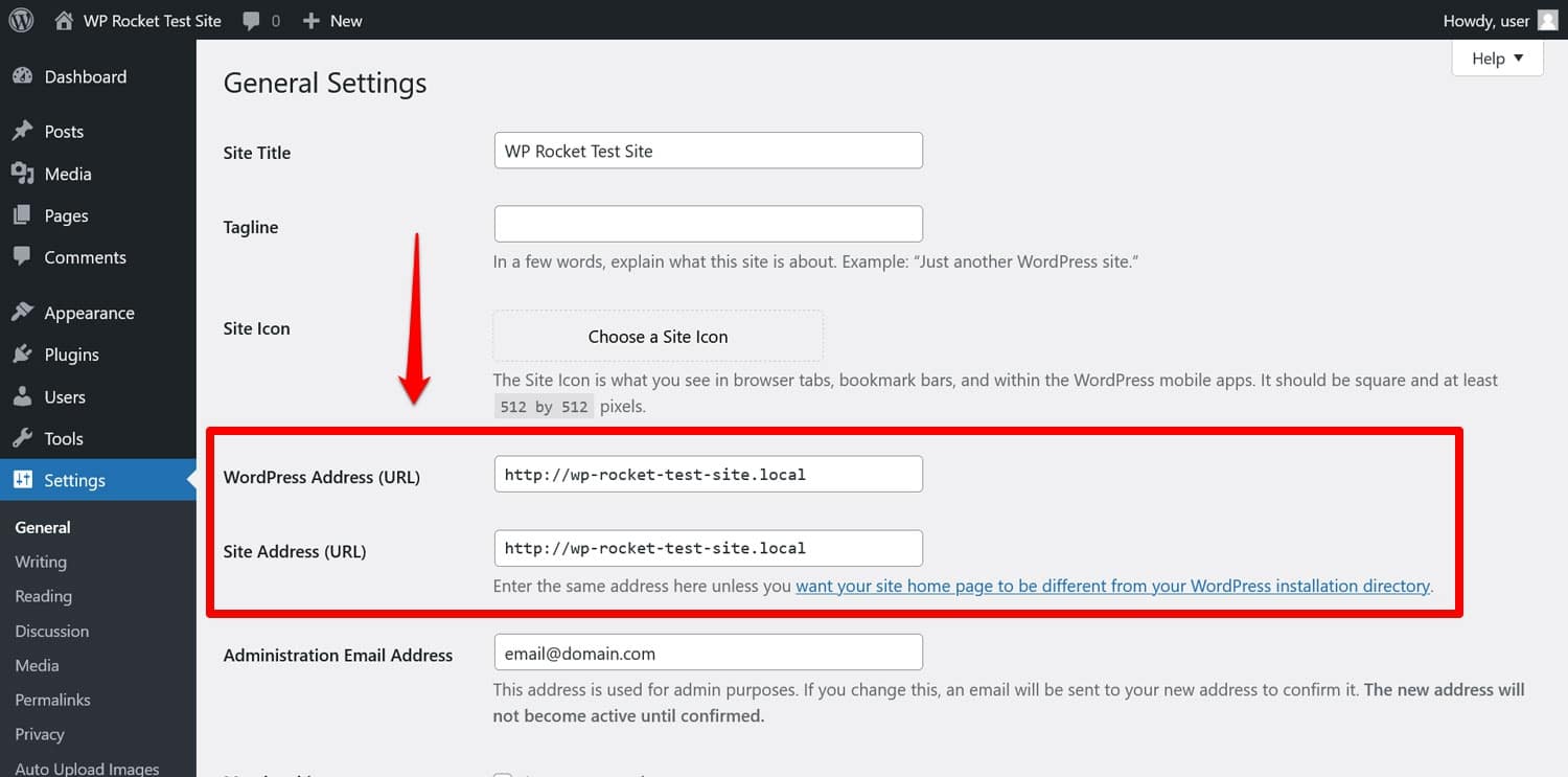 If you are currently using a temporary domain for your new WordPress site, you also have to update your WordPress Address and Site Address under Settings > General to your real domain.
