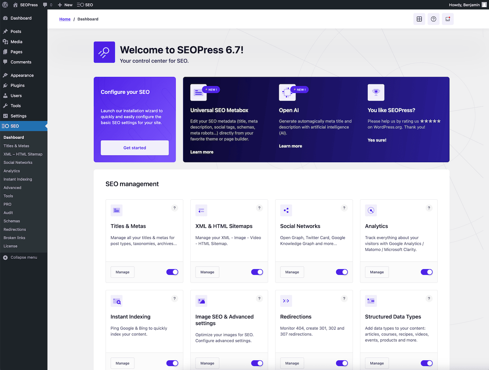 SEOPress helps you elevate your ranking and boost your traffic thanks to its comprehensive on-page optimization tool, packed with key features such as redirect manager, XML sitemaps, schema markups, WooCommerce SEO, GA4, and Matomo Analytics. The plugin is a great choice both for SEO beginners and experts.